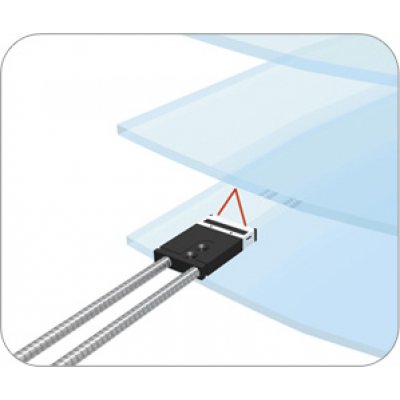 VOLVER Alinear sustrato de vidrio La fibra óptica NF-DH10(resistente al calor hasta 250ºC) permite alinear el sustrato de vidrio.La ventana del sensor es de doble estructura, permitiendo que no se vea afectada la detección si el sustrato se inclina.