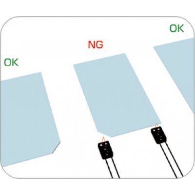 VOLVER Detectar la cara correcta de un vidrio La fibra óptica NF-DC38 puede detectar el lado en el que se encuentra el vidrio, debido a la muesca. Detecta la muesca incluso si el vidrio es transparente.